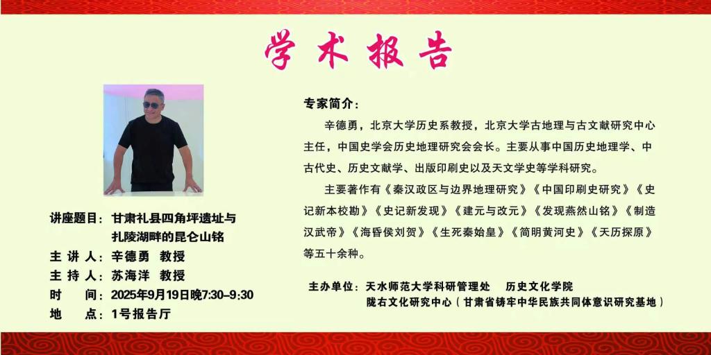 学术预告:甘肃礼县四角坪遗址与扎陵湖畔的昆仑山铭